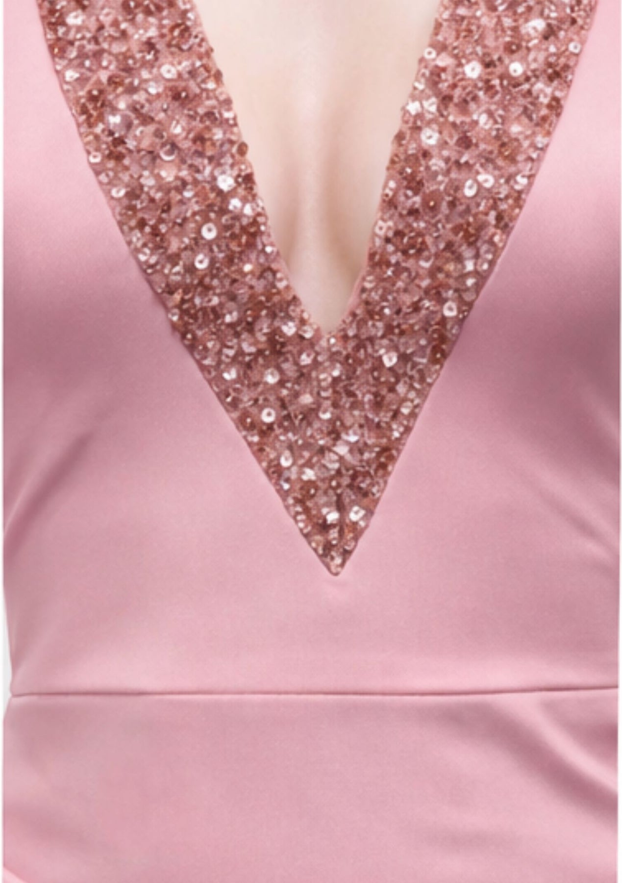 A feminine and sophisticated dress designed to highlight your silhouette with effortless elegance. The flattering cut gently follows the body, while the deep V-neckline with a subtle sparkling detail adds a touch of glamour and refinement.